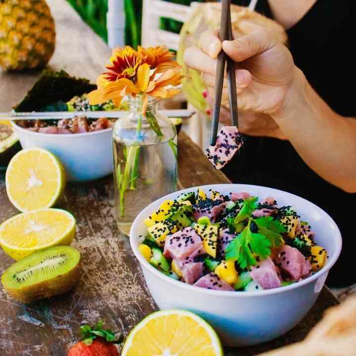 There is also a fish taco place next door called The Real Fish Taco and Aloha will allow you to order food from there as long as you order drinks with them.
