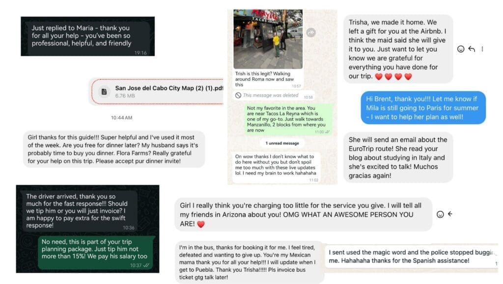 By paying Trisha to plan my family trip to Mexico, I actually saved more on time researching on unreliable and conflicting resources. She also gave us discounts on the tours and the hotels she works with. Attention to detail is superb and I am also impressed on how she is so immersed with the Mexican culture. I assure you you will spend more time and money on planning your trip. Trisha is your girl in Mexico!
